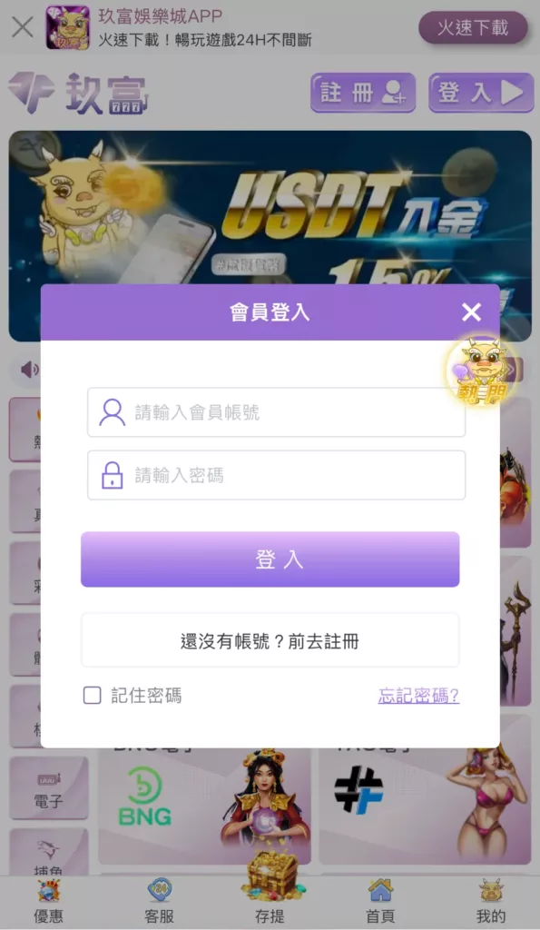 - 虛擬貨幣:支援 USDT 主流加密貨幣,交易快速、安全。
