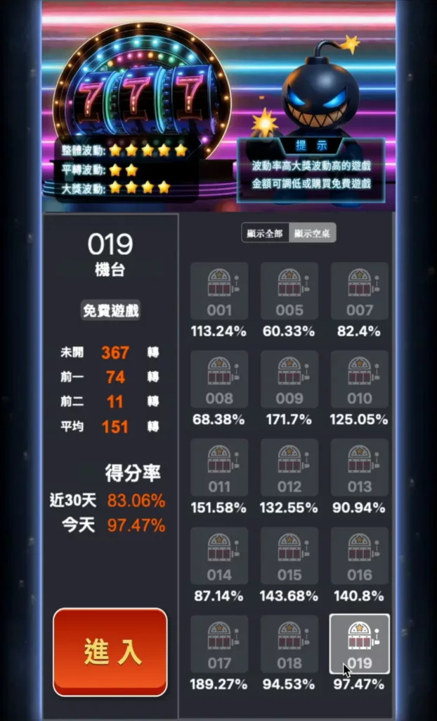 > 如果得分率穩定在 100%-200%,說明機台正處於高回報階段,適合加大投注金額或購買免費遊戲。