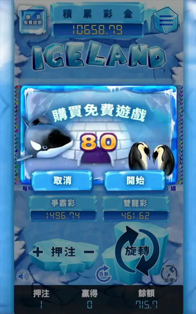 畫面下方會同步顯示 點數、贏分與押注金額,這是玩家在遊戲過程中最常查看的資訊區。點數代表目前持有資金,贏分則顯示當前回合或累計的中獎結果,押注則對應本次下注金額。這三項資訊被安排在畫面下方中央,位置直覺、辨識度高,方便玩家在看盤時同時掌握目前的資金與投注狀況。