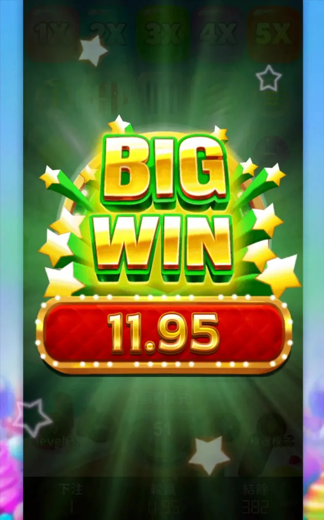 這款遊戲的贏分會先依照盤面消除的符號數量,套用對應賠率,再依照盤面出現的倍率符號,形成最後的總倍數。因此,這款遊戲真正精彩的地方,不只是符號本身的高低分差異,而是每一輪中獎後,後續能不能再串接出更高的倍率回報。