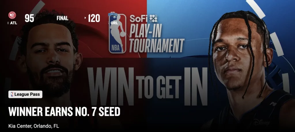 老鷹隊 則將與東區 9-10 名附加賽的勝者進行最後一場比賽,爭奪第 8 順位的季後賽資格。